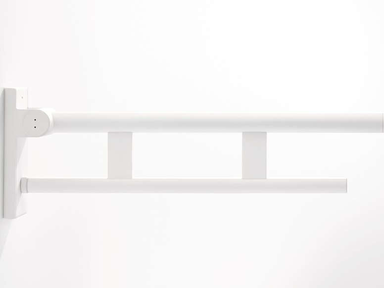 Sicheres Halten ist im Bad unerlässlich. Für die Sicherheit im Bad ist es hilfreich, ausreichend Stützklappgriffe und/oder Haltegriffe einzuplanen. Diese vereinfachen das Aufstehen und Hinsetzen. Noch dazu ermöglicht das Rundrohrdesign von WARM TOUCH ein symmetrisches Greifen. Nutzende empfinden die ergonomische Form und warme Haptik als angenehm – besonders bei Kälteempfindlichkeit.