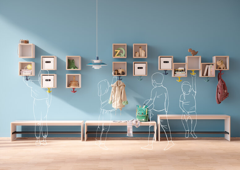 Functionality, safety and aesthetics - the design of a cloakroom for child daycare centres plays an important role in meeting the needs of the children and creating an organised environment.