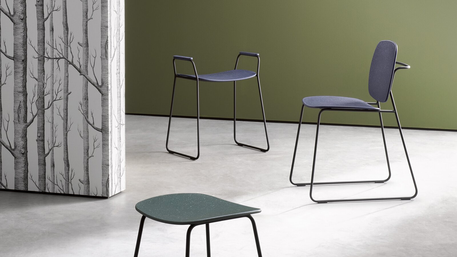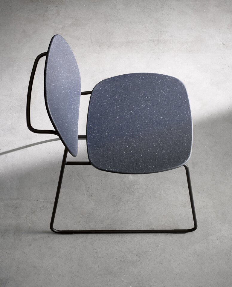 Susan Herrmann: Our Re-Seat family is based on a slender round tube design made of metal, which is optionallypowder-coated in black or high-gloss chrome-plated. As already mentioned, the seats, backrests and armrests of the Re-Seat family are made of post-industrial recycled material, which makes each piece of bathroom furniture unique and is the most special feature of the products.