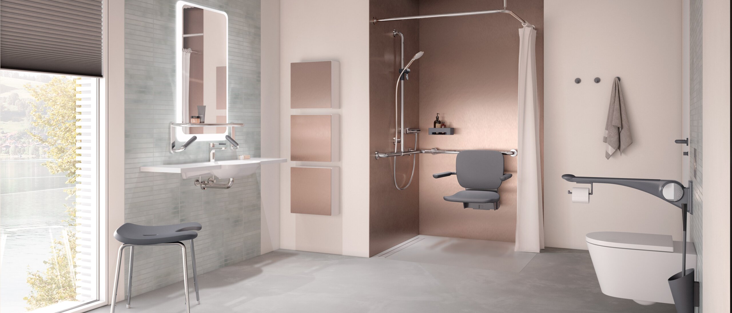 The bathroom is a central room in every accessible living space. Make sure that all relevant DIN standards are complied with, or check whether low-barrier equipment is sufficient in the specific case.