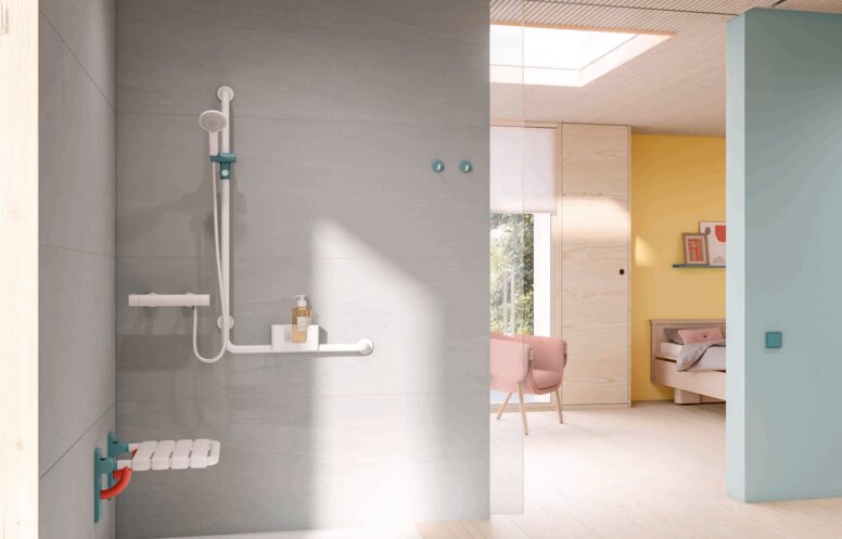 The fittings of the patient bathrooms is a decisive aspect of healing architecture. These should not only be accessible and safe but also create a calming and healing atmosphere. Ergonomically designed elements play an important role in increasing patient comfort. And hygienic and are easy-to-clean materials help control infections and increase well-being. Sophisticated lighting and a pleasant colour scheme also promote relaxation and support healing. A well-designed patient bathroom must fulfil the diverse needs of patients. Products such as support rails, hinged support rails, and seating options offer additional comfort and safety for everyone. These elements not only make everyday hospital life easier for patients but also promote their independence and can relieve the burden on the care staff.
