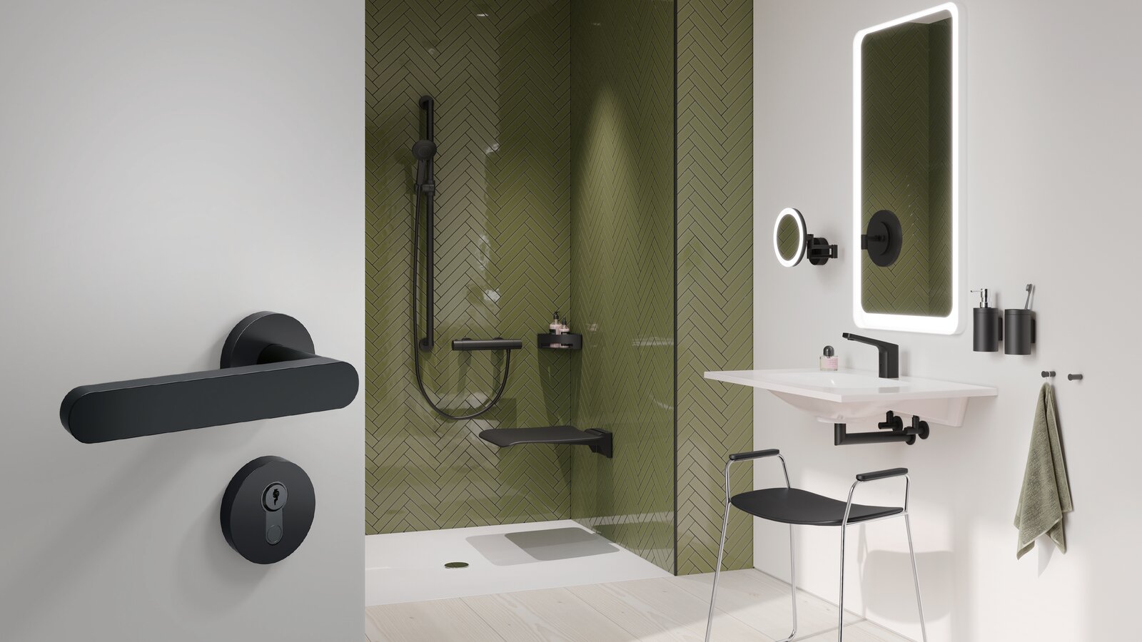 Within the HEWI range, it is above all the carefully developed colour concepts that offer exceptional planning variety. The mini design variant also allows planners to make use of individual design possibilities. The high-quality 270 fitting range now features the brand-new Choose your own Colour palette, offering an inspiring spectrum of over 4,500 possible colours – including on-trend shades such as Soothing Cedar Brown, Faded Cinder Rose, and Somber Sage Green.