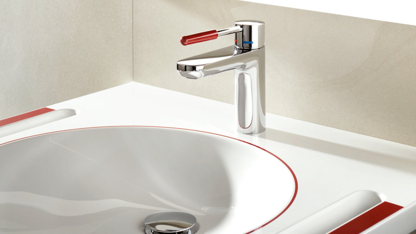 Qualitative studies on the colour perception of people suffering from dementia show that the colour red is most likely to be perceived. For this reason, the coloured markings of the washstand were designed in red.