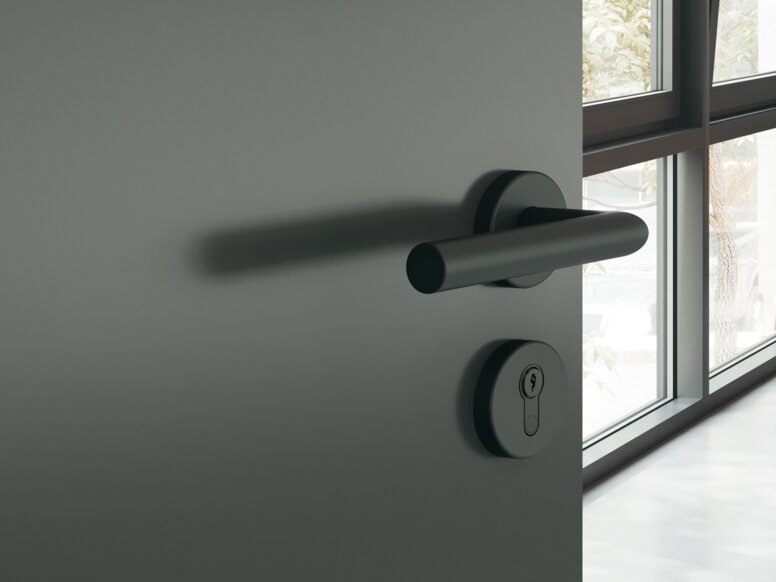 Les options de matériaux ouvrent la voie à un design personnalisé : les poignées de porte sont disponibles en acier inoxydable et en polyamide, au choix en édition mate ou avec un revêtement par poudre.